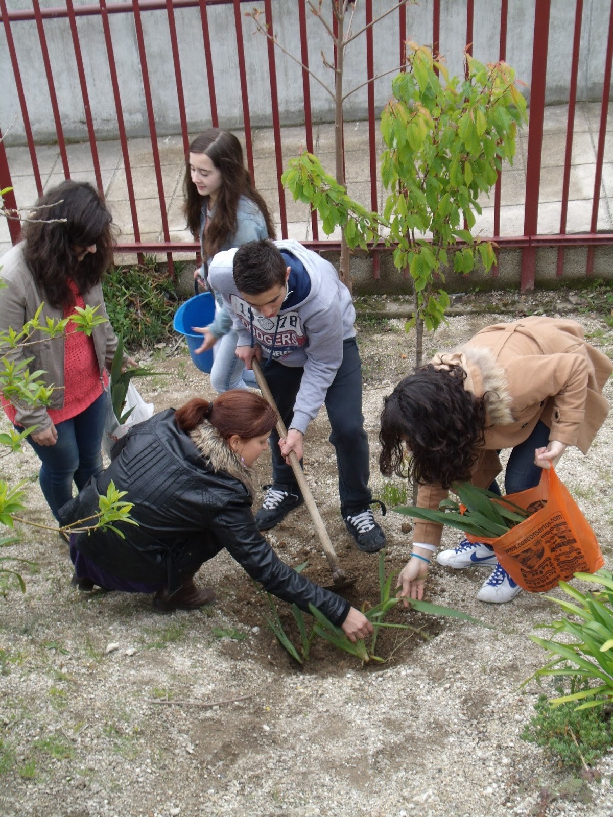 Os alunos do 9.º Ano da Escola Básica de Vila Caiz, plantaram árvores no jardim da escola, no âmbito da disciplina de Geografia, tendo em conta o tema, a degradação da cobertura vegetal.
